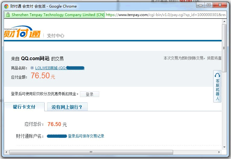双击 打开财付通 链接(如下图)